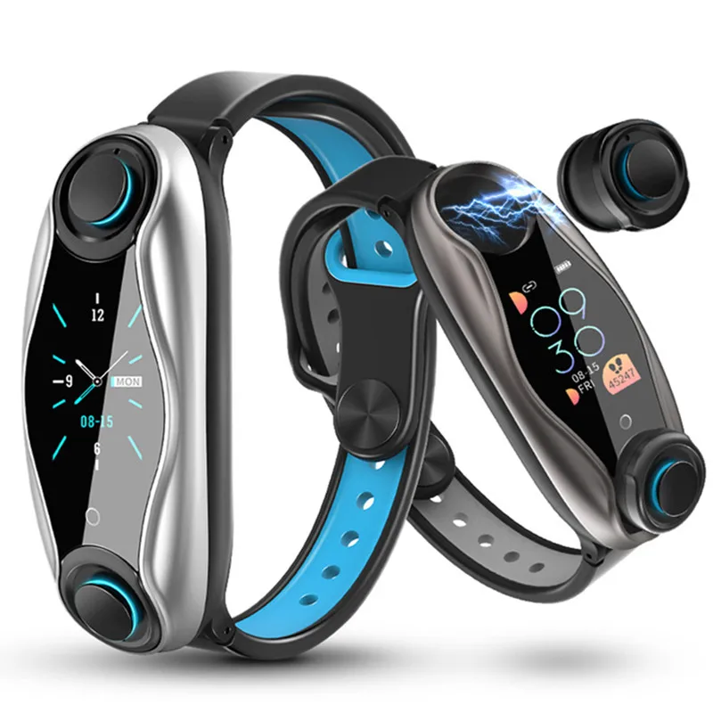 New Dual Bluetooth Earphone Smart Bracelet Men Heart Rate Monitor Smartwatch Wristband Long Time Standb